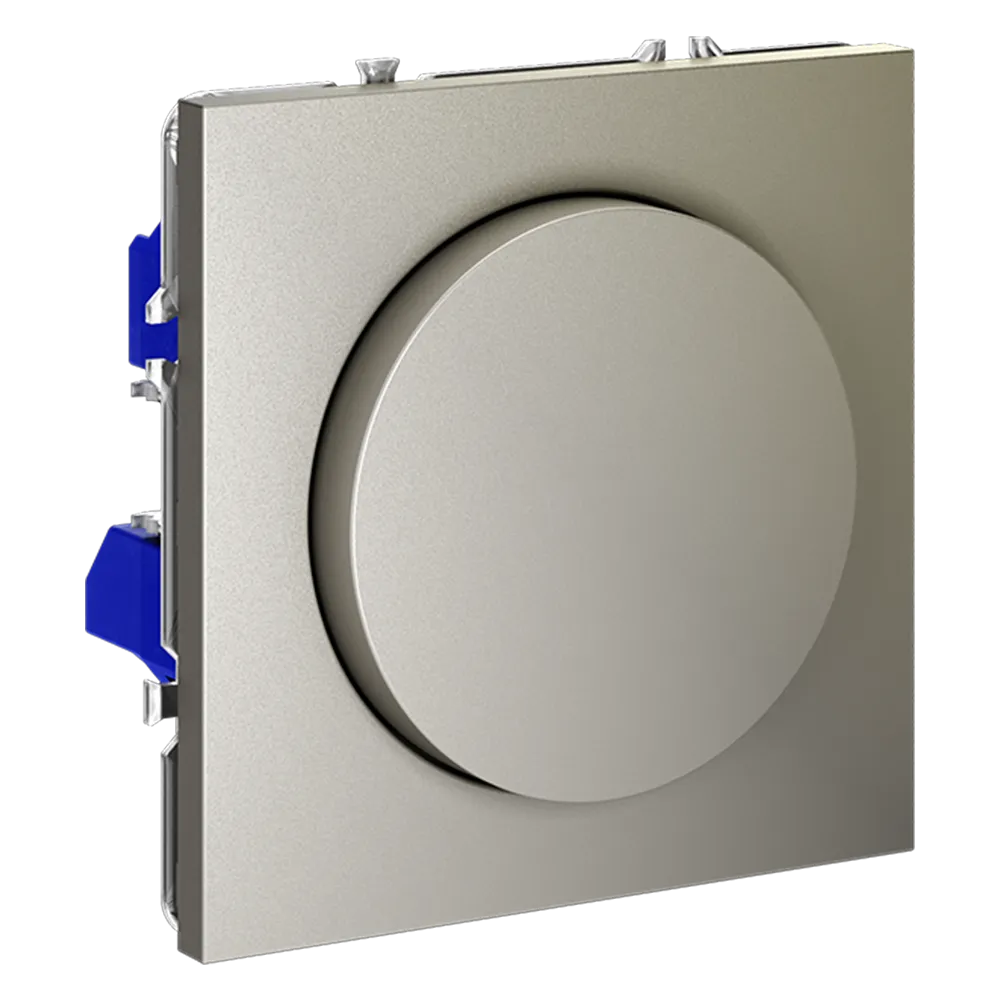 Устройство работает как полноценный выключатель (нажатие включает/выключает свет) и как диммер (поворот регулирует яркость от 5 до 600 Вт). Совместим с светодиодными, галогенными и лампами накаливания, поддерживающими фазовое диммирование, включая современные LED-источники благодаря технологии отсечки по заднему фронту — без мерцания, шума и резких скачков напряжения.